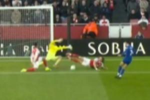 比赛第17分钟,恩迪亚耶的传中被拉亚扑了一下,麦克尼尔门前的近距离补射被已经倒地的卡拉菲奥里用一个非常奇怪的蝎子摆尾姿势极限封堵了出来!