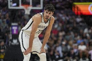 篮网上半场比赛进攻效率不佳,全队投篮45中14,三分19中4,罚球9中5,其中首节仅得14分。