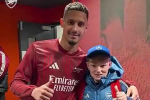 阿森纳官方晒出视频,萨利巴对球童说道:还好吗?上次很抱歉。随后萨利巴将自己的球衣送给这名球童