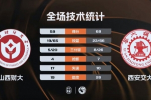 末节比赛,西安交大的进攻表现有所回落,前七分钟的时间里只拿到6分,这也给了山西财大追分的机会,分差最小时仅剩3分,但之后她们一分未得,西安交大连拿7分稳住局势,韩晴更是命中压哨三分球,最终西安交大68-58力克山西财大夺得西北王。