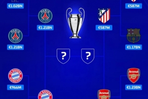 体育资讯4月16日讯 欧冠八强战已经全部结束,四强对阵也已经出炉。《转会市场》也列出了欧冠四强的总身价: